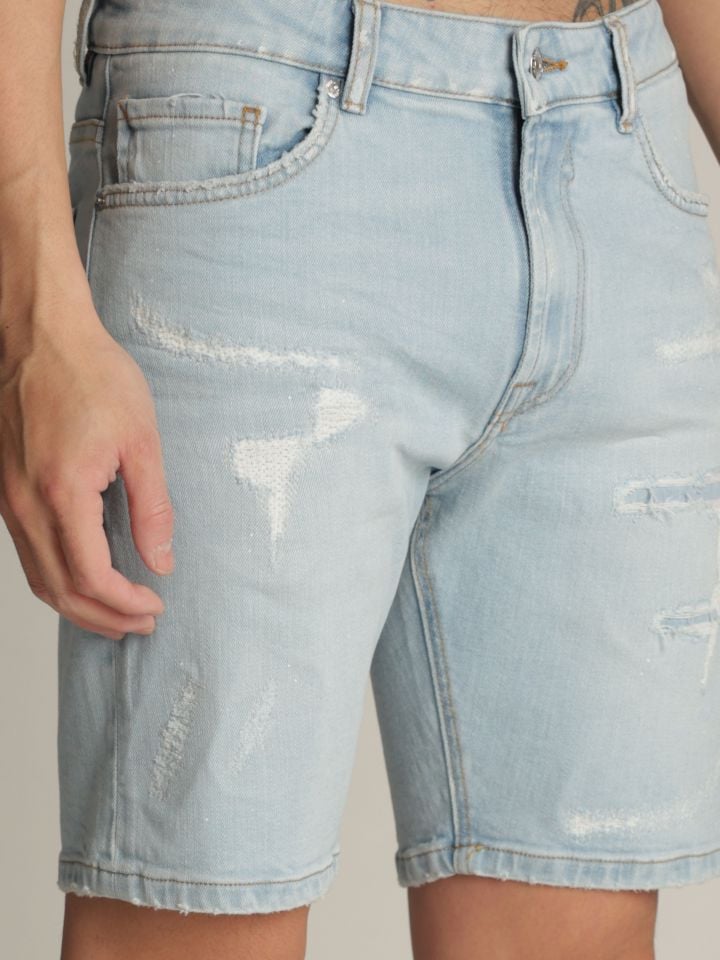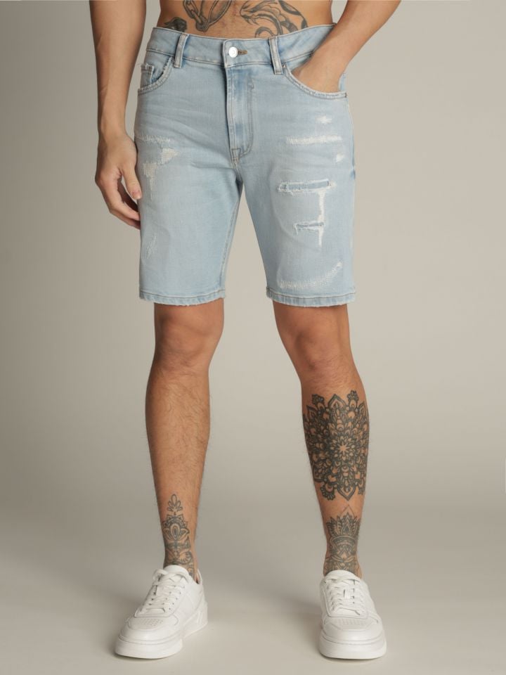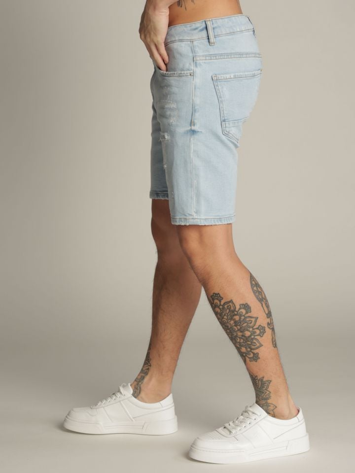 מכנסי ברמודת ג’’ינס לגבר גיאומטרי