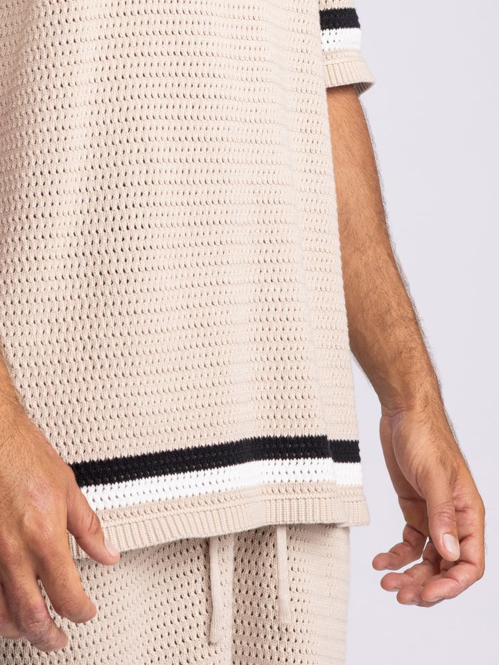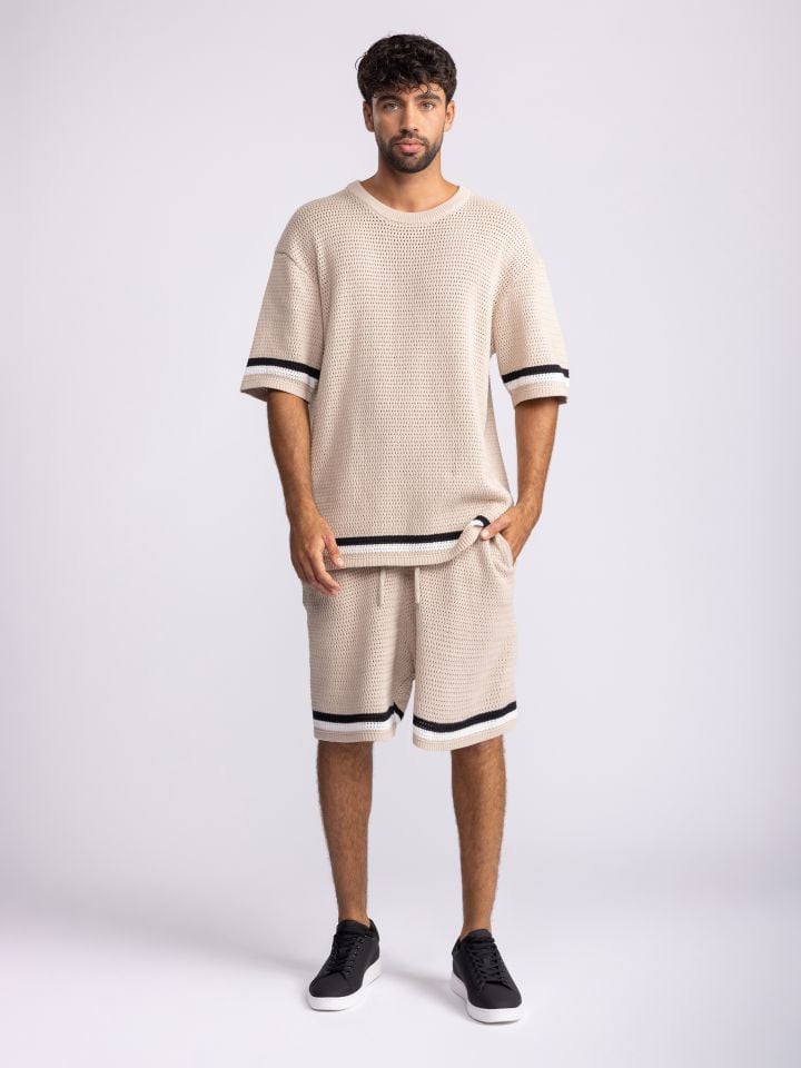 מכנסי בד בגזרה נינוחה עם חגורת מותן אלסטית ושרוך קשירה להתאמה אישית. עיצוב נקי עם כיסים צדדיים ובד קליל במראה טבעי לנוחות מקסימלית. למכנסיים חולצה משלימה מדגם 4E036.