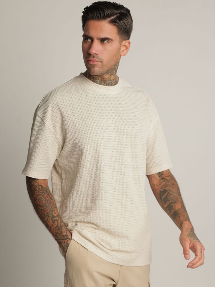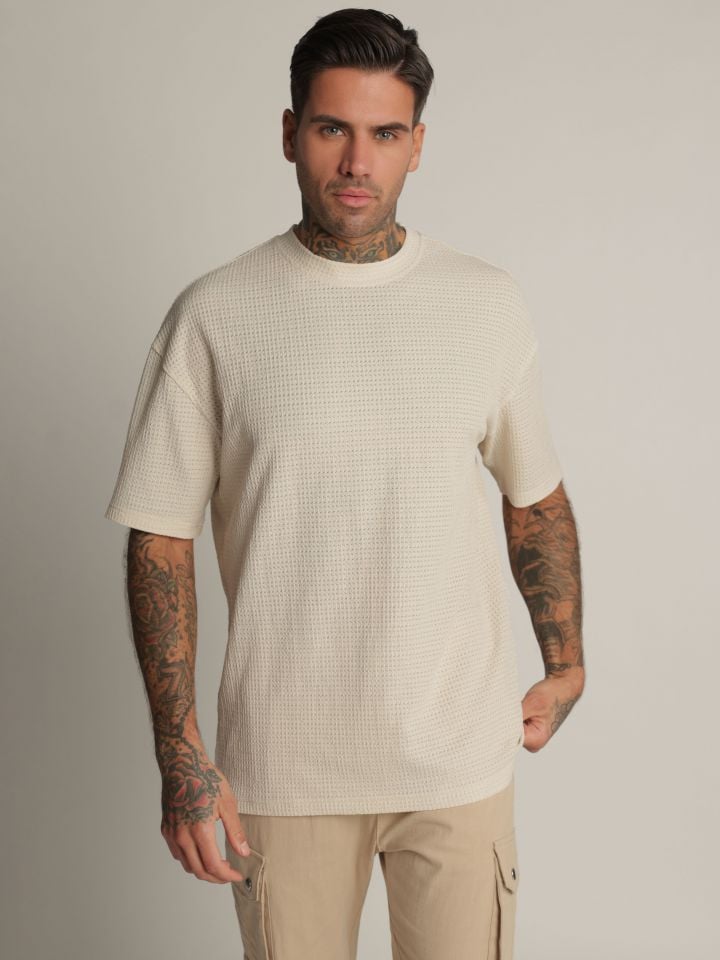 חולצת טי שירט לגבר בגזרת אוברסייז עשויה 100% כותנה בד נעים ורך למגע, בעיצוב נקי עם נוכחות. כוללת מיתוג בולט בגב ובחזית העליונה בטכניקת הדפסה מובלטת בגוון אחיד.